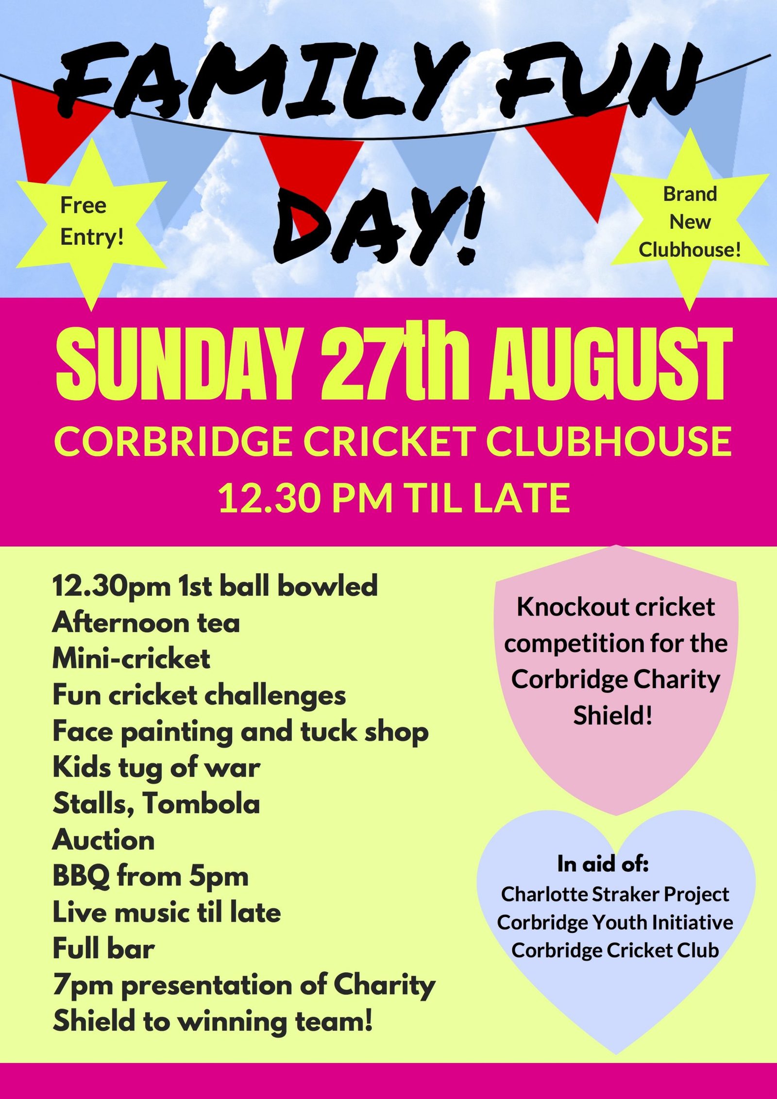August 31, 2017A great turn out for the Corbridge Fun Day at Corbridge Cricket Club on Sunday August 27 . Also in aid of Corbridge Youth Initiative and the Charlotte Straker Project. Well done to all involved in making it such a success.